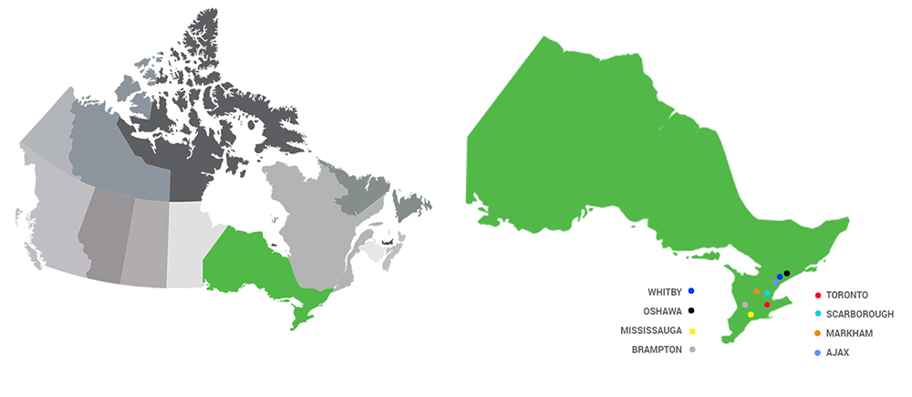 GTA, Toronto, Scarborough, Markham, Ajax, Whitby, Oshawa, Mississauga, and Brampton